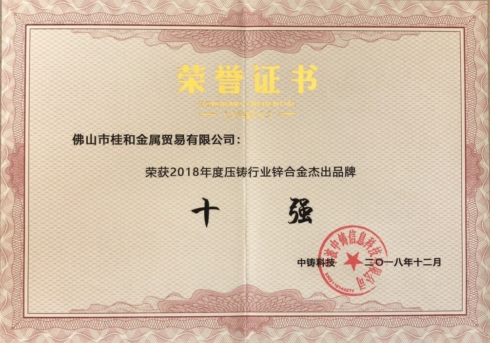 2018年度壓鑄行業(yè)鋅合金接觸品牌十強(qiáng)