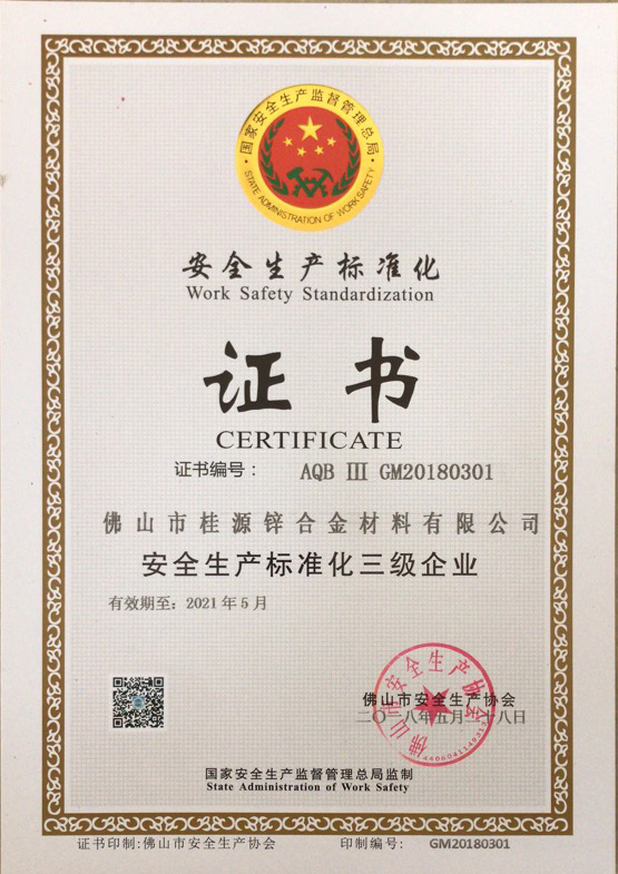 安全生產(chǎn)標(biāo)準(zhǔn)化證書