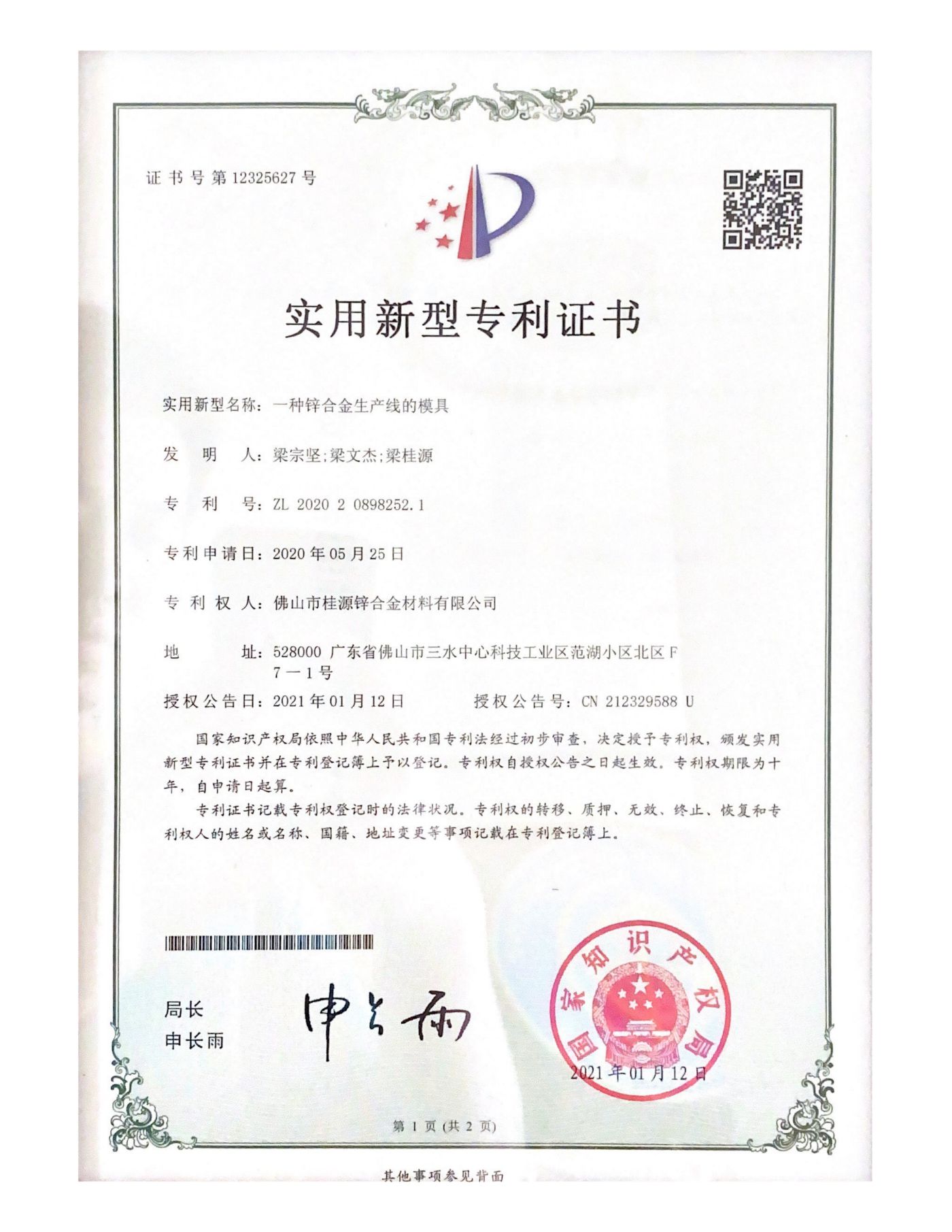 實(shí)用新型專利《一種鋅合金生產(chǎn)線的模具》